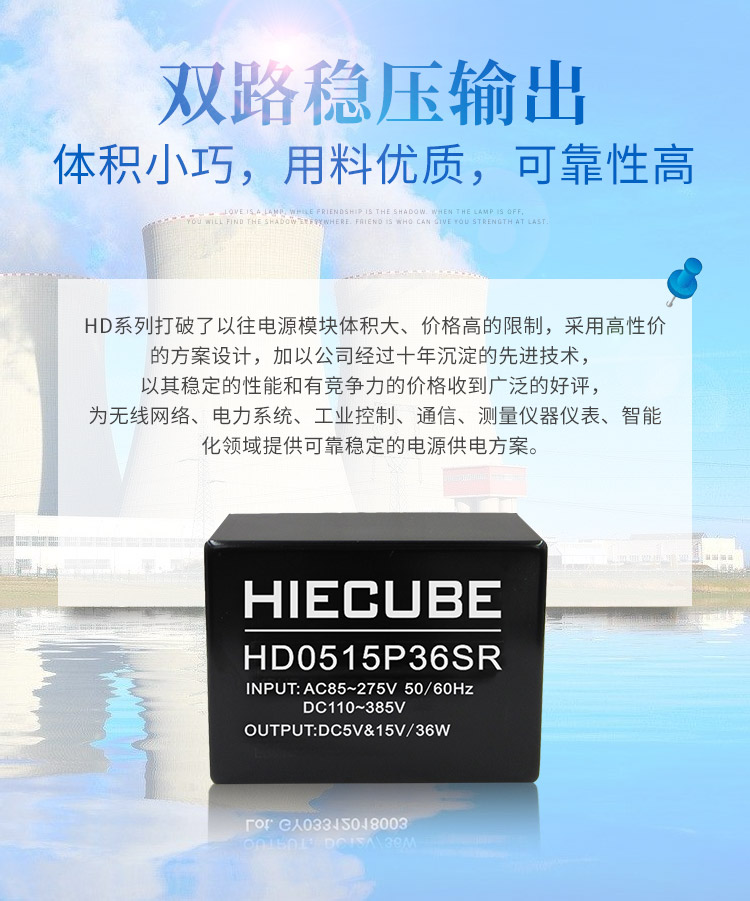 品牌:HIECUBE(高能立方) 型號:HD0515P36SR 隔離耐壓:3000VAC 輸出電壓精度:±1% 電源類別:工業級ACDC電源模塊 模塊質保年限:3年