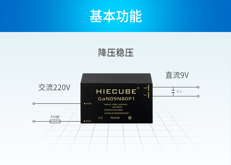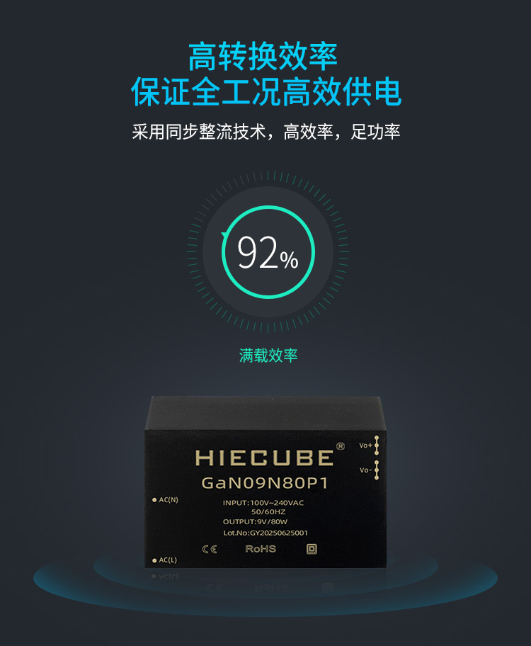品牌:HIECUBE/高能立方 型號:GaN09N80P1 隔離耐壓:3000VAC 輸出電壓精度:±1% 電源類別:AC-DC電源模塊 模塊質保年限:三年