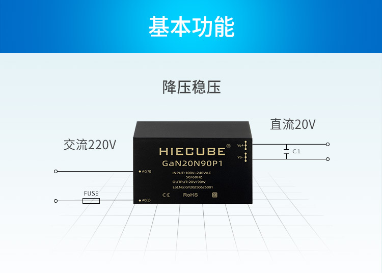品牌:HIECUBE/高能立方 型號:GaN20N90P1 隔離耐壓:3000VAC 輸出電壓精度:±1% 電源類別:AC-DC電源模塊 模塊質保年限:三年