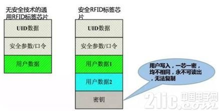 ▲通用的RFID標簽芯片與安全RFID標簽芯片的比較區別