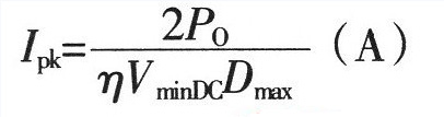 2、變壓器原邊繞組電流峰值IPK如上式:η為變壓器的轉換效率,Po為輸出額定功率,單位為W。