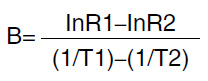 等式如上所示:R1、R2分別是絕對溫度T1、T2時的電阻值。