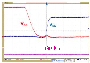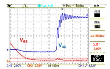 上圖所示為由于電路寄生效應引起的具有分立MOSFET的相位節(jié)點電壓振鈴,使用模塊電源時,具有連接兩個MOSFET的開關節(jié)點夾將高側和低側MOSFET之間的寄生電感保持在絕對最小值。在同一封裝中使用低側和高側FET可最大限度地減少PCB寄生,并減少相節(jié)點電壓振鈴。使用這些模塊電源有助于確保平滑的驅動MOSFET開關,即使在電流高達50A時也不會出現(xiàn)電壓過沖,如下圖所示。